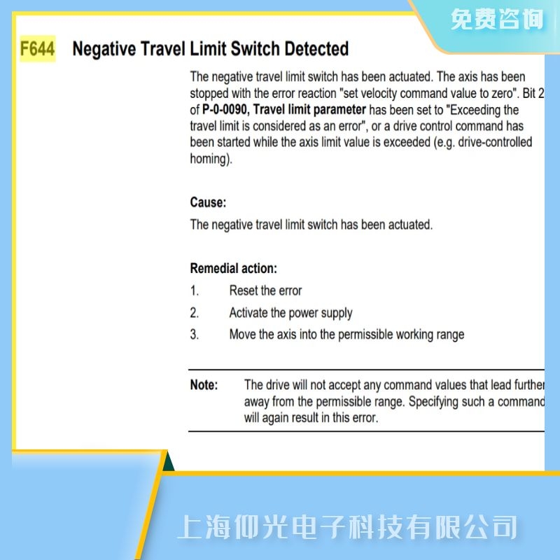 無論任何品牌的工控產(chǎn)品由于環(huán)境惡劣,操作不當(dāng),使用年限等原因,難免會(huì)出現(xiàn)故障,最重要的是及時(shí)查找出原因,對(duì)應(yīng)解決故障,及早恢復(fù)正常使用上海仰光面向全國,支持順豐到付,擁有全套測試平臺(tái),軟硬件結(jié)合,帶載運(yùn)行,維修速度快,價(jià)格低,免費(fèi)檢測,修好測試后發(fā)出,修不好不收費(fèi)用,免費(fèi)咨詢:13817011982張工.關(guān)于博世Rexroth力士樂伺服器功率模塊報(bào)F644檢測到負(fù)行程限位開關(guān)故障維修的技術(shù)問題上海仰光電子提供24小時(shí)免費(fèi)咨詢服務(wù).